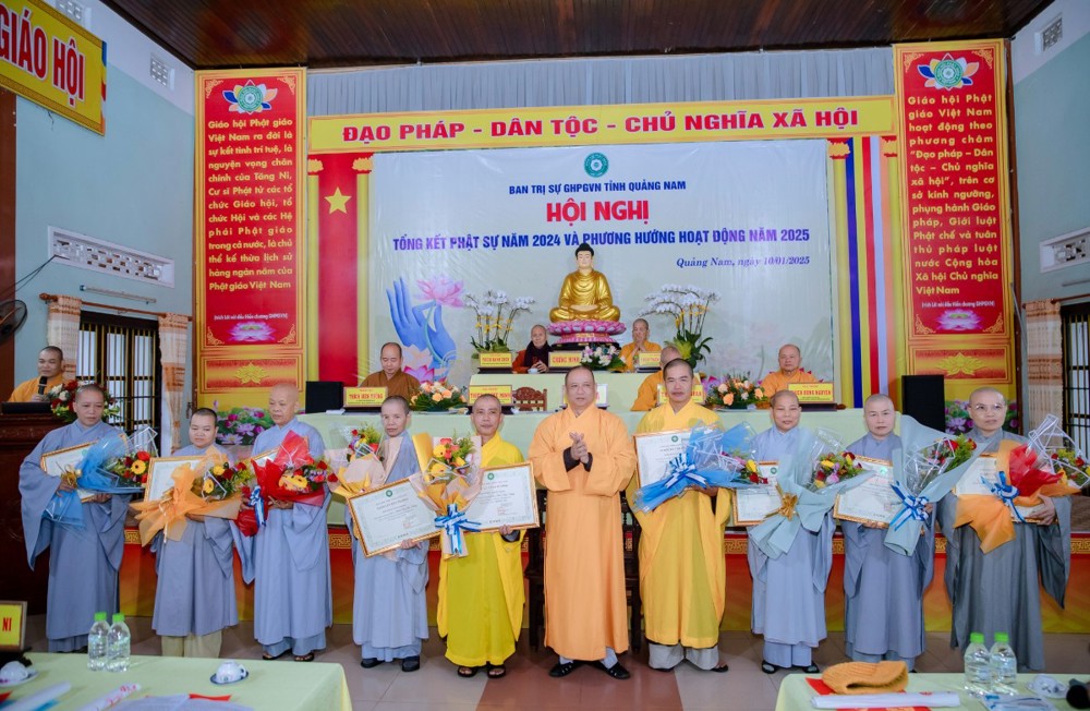 đã có nhiều thành tựu đáng chú ý, như: Công bố quyết định thành lập và ra mắt Ban Trị sự GHPGVN huyện Nam Giang; tiến hành thủ tục đăng ký thành lập Ban Trị sự GHPGVN huyện Đông Giang. Công tác điều chỉnh nhân sự Ban Trị sự GHPGVN huyện Duy Xuyên, huyện Đại Lộc và truyền thông thông tin kịp thời, đầy đủ. Duy trì tổ chức các khóa bồi dưỡng nghiệp vụ trụ trì năm 2024 cho Tăng Ni Quảng Nam. Quan tâm chú trọng đến công tác an sinh xã hội, hỗ trợ Ban Từ thiện xã hội Trung ương thăm, thực hiện các công tác Phật sự, nêu cao tinh thần gắn kết hữu nghị Phật giáo 2 tỉnh Quảng Nam và Thanh Hóa; xem xét việc thành lập các điểm sinh hoạt; thành lập cơ sở mới tại thị trấn Prao huyện Đông Giang.