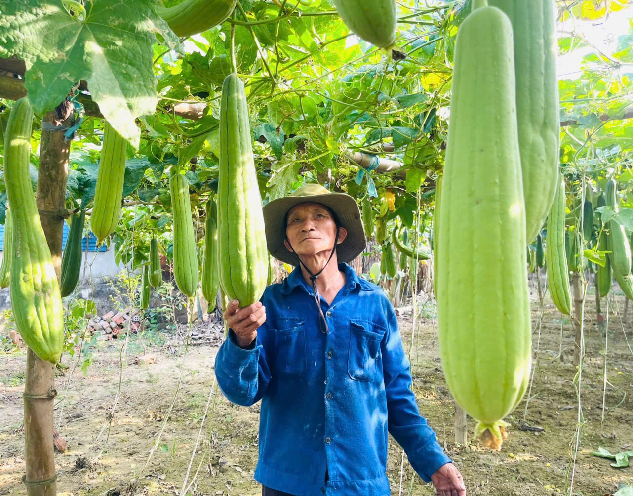 Mô hình liên kết sản xuất mướp lấy xơ ở thôn Thi Lai, xã Duy Xuyên phát huy hiệu quả. Ảnh: T.S