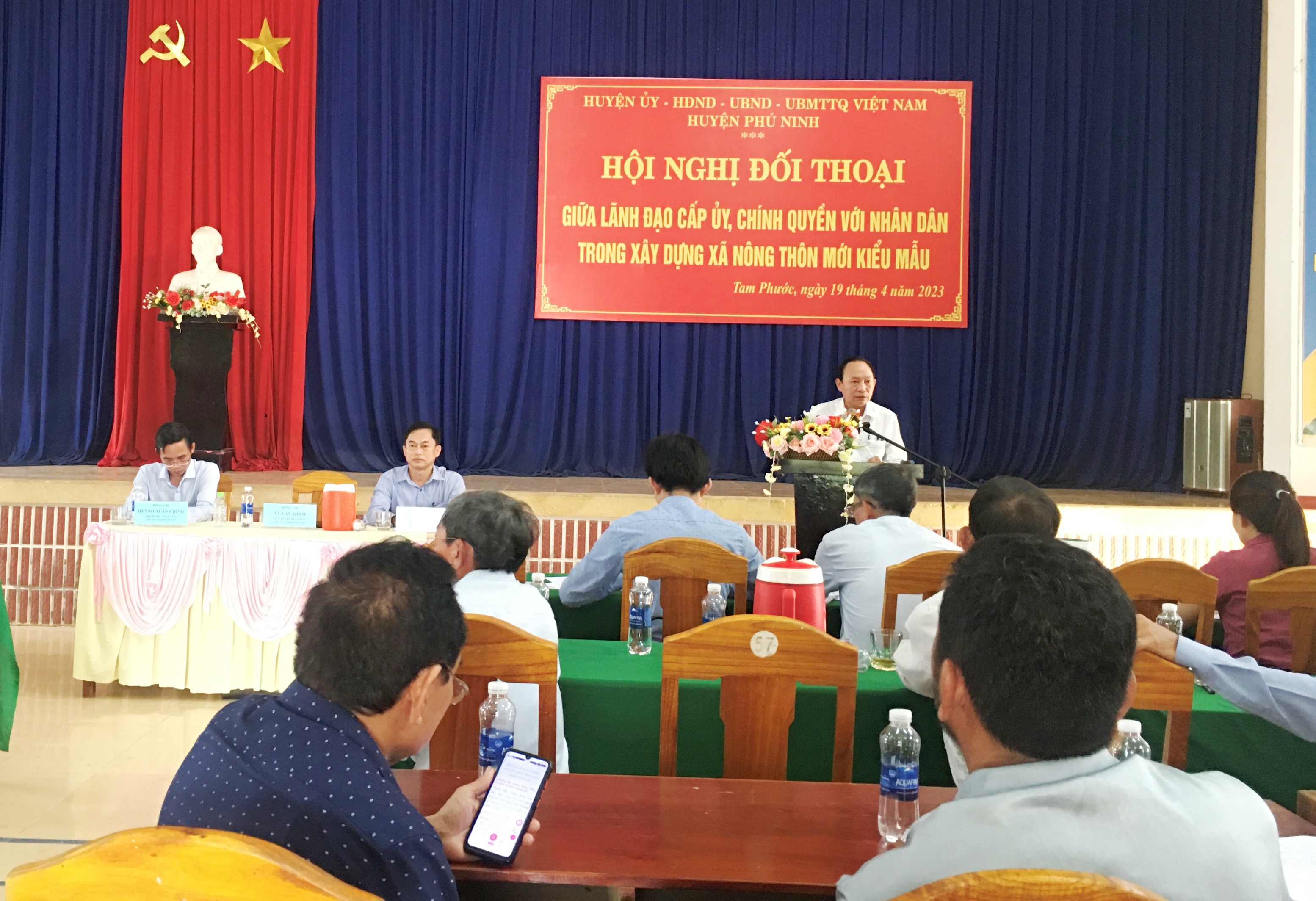 Trước ý kiến của các đại biểu, với tinh thần cầu thị và thẳng thắn, các đồng chí lãnh đạo Huyện ủy, UBND huyện và xã Tam Phước đã tiếp thu và giải đáp cụ thể những kiến nghị, đề xuất của nhân dân ngay tại buổi đối thoại. Ông Vũ Văn Thẩm-TUV-Bí thư Huyện ủy-Chủ tịch HĐND huyện Phú Ninh đề nghị Đảng ủy-HĐND-UBND xã Tam Phước cần xây dựng kế hoạch, lộ trình cụ thể trong việc xây dựng xã nông thôn mới kiểu mẫu, đồng thời phát huy hơn nữa vai trò chủ thể của người dân trong thực hiện Chương trình mục tiêu Quốc gia xây dựng nông thôn mới, xây dựng xã nông thôn mới kiểu mẫu. Có như vậy việc xây dựng nông thôn mới đi đúng trọng tâm, trọng điểm; giải quyết tốt những khó khăn, bức xúc của người dân trong sản xuất, phát triển kinh tế nâng cao đời sống vật chất và văn hóa của người dân.