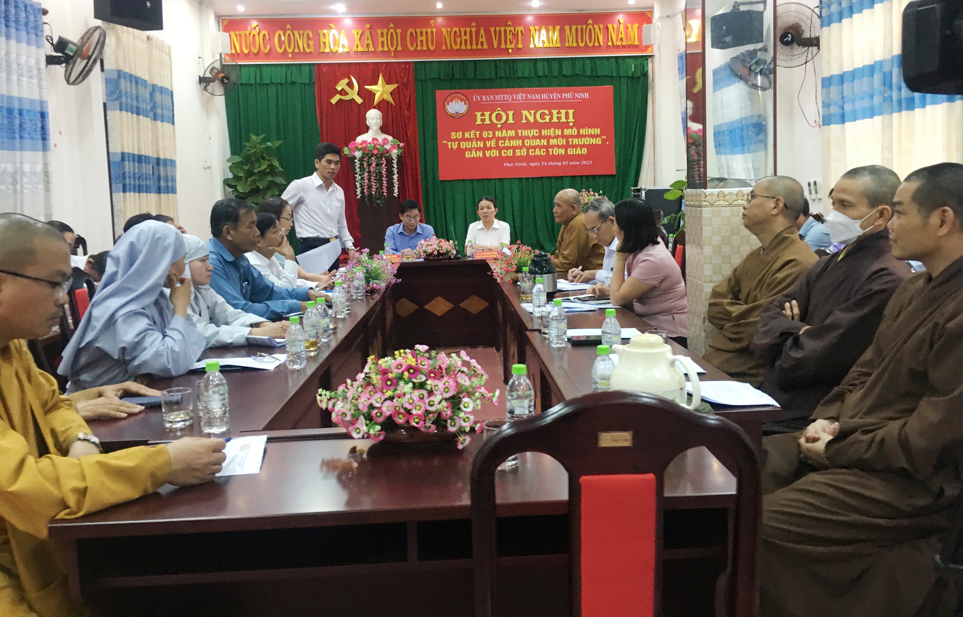 Hội nghị do ông Đặng Vân-UVBTV Huyện ủy-Chủ tịch Ủy ban MTTQ Việt Nam huyện và bà Lê Thị Bích Phượng- Phó Chủ tịch Ủy ban MTTQ Việt Nam huyện chủ trì. Đến dự hội nghị có ông Lê Văn Ninh-Phó Bí thư Thường trực Huyện ủy và đại diện lãnh đạo Ban Dân vận Huyện ủy, Ban Tuyên giáo Huyện, Ban Thường trực Ủy ban MTTQ Việt Nam các xã, thị trấn và đại diện 13 cơ sở thờ tự tôn giáo trên địa bàn huyện.
