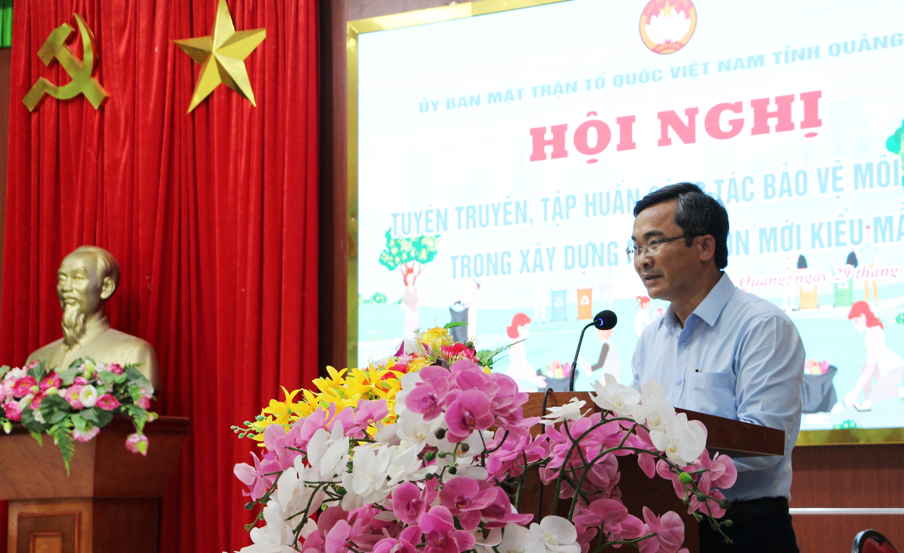 Ông Nguyễn Phi Hùng- Phó Chủ tịch Thường trực Ủy ban MTTQ Việt Nam tỉnh và bà Nguyễn Hoàng Yến- Phó Chi cục Trưởng Chi Cục Bảo vệ môi trường tỉnh tham dự và trực tiếp báo cáo tại Hội nghị.