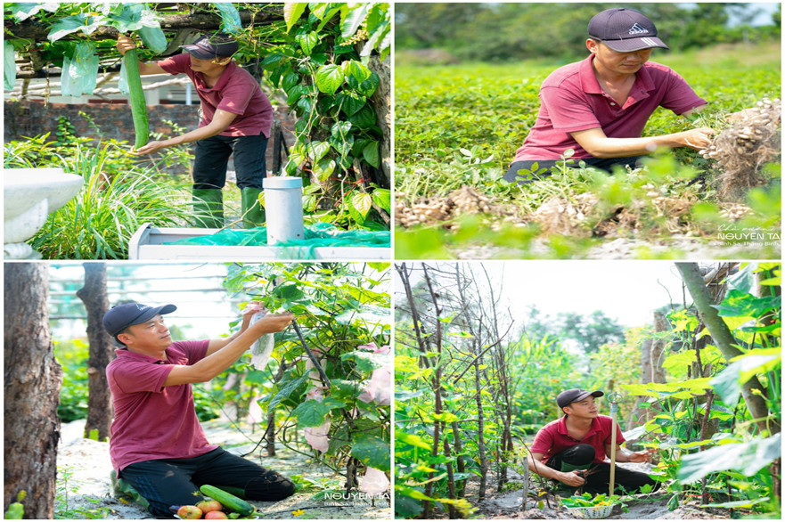 Ảnh anh Mận chăm vườn và thu hoạch khu liên canh hoa màu trái vụ