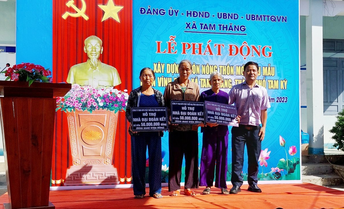 Nhân dịp phát động, Ủy ban MTTQ Việt Nam xã Tam Thăng vận động hỗ trợ 03 Nhà đại đoàn kết cho các hộ nghèo, mỗi nhà trị giá 50 triệu đồng và 25 tủ thuốc y tế cho các hộ nghèo, hộ cận nghèo, hộ khó khăn tại khu dân cư Vĩnh Bình./.