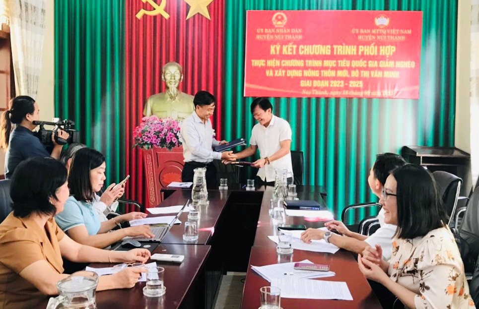 Tại buổi làm việc, các bên đã tiến hành ký kết cùng phối hợp thực hiện các nội dung cụ thể như: vận động các tầng lớp nhân dân hưởng ứng; vận động nguồn lực hỗ trợ; xây dựng và nhân rộng các mô hình tiên tiến về giảm nghèo bền vững, xây dựng nông thôn mới, đô thị văn minh; phối hợp kiểm tra, giám sát, phản biện xã hội về các chính sách giảm nghèo bền vững, xây dựng nông thôn mới, đô thị văn minh…