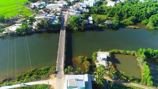 Cầu Nguyễn Phùng (tục danh cầu Bà Giày) thôn Phú 1 bắt qua con sông Trầu xuôi về trung tâm huyện lỵ
