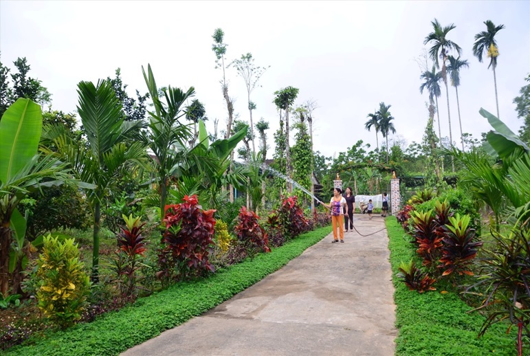 Mô hình “Nhà sạch, vườn đẹp” của chị Phan Thị Để (thôn 4, xã Tiên Lập, huyện Tiên Phước)