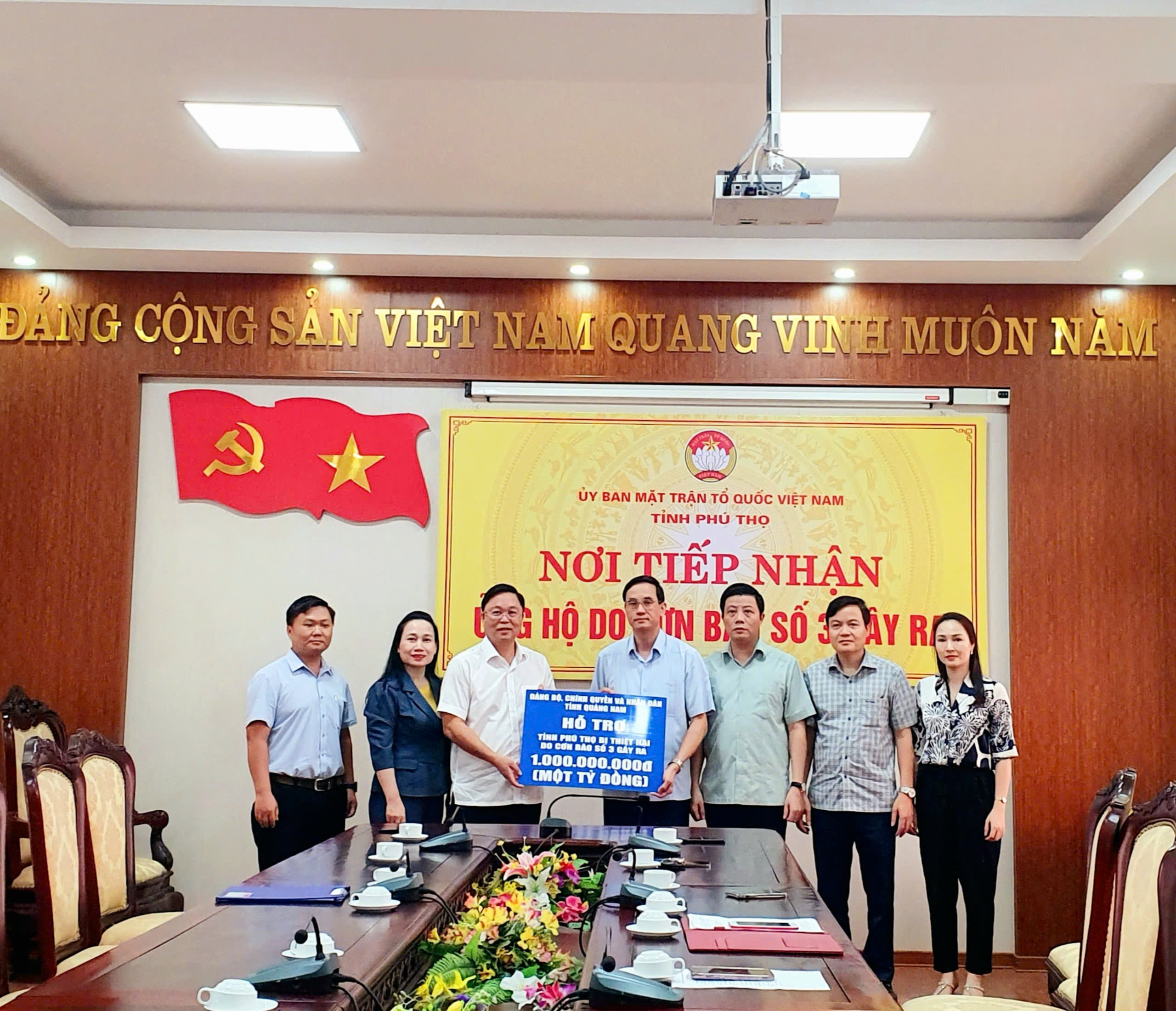 Các cơ quan, địa phương kịp thời chuyển tiền ủng hộ về Ban cứu trợ tỉnh như: Mặt trận thành phố Tam Kỳ (568 triệu đồng), Mặt trận huyện Duy Xuyên (500 triệu đồng), Công ty cổ phần Tuấn Đạt (300 triệu đồng), Công ty TNHH một thành viên phát triển hạ tầng khu công nghiệp Chu Lai (100 triệu đồng)…