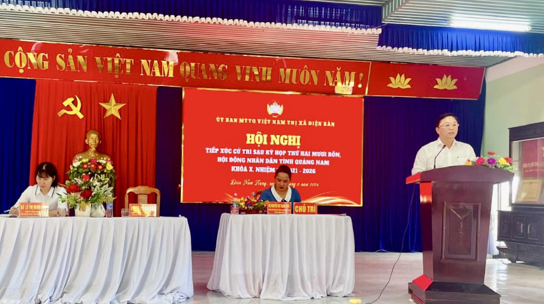 * Cử tri huyện Duy Xuyên: cần quan tâm đầu tư, xây dựng, sửa chữa, nâng cấp các tuyến kè chống sạt lở dọc bờ sông Thu Bồn để bảo đảm an toàn tính mạng và tài sản của người dân; đầu tư, nâng cấp, sửa chữa các tuyến đường giao thông nông thôn; việc thu thuế sử dụng đất phi nông nghiệp hiện nay chưa rõ ràng, chính xác gây phiền hà cho người dân; việc hoàn thổ các mỏ đất cấp phối tại khu vực Nổng Bồ, xã Duy Trung; vấn đề ô nhiễm môi trường (nước thải, khí thải) tại Cụm công nghiệp Tây An, xã Duy Trung, Công ty Sedo Vinako. Ngoài ra, cử tri tiếp tục đề nghị quan tâm đầu tư xây dựng cơ sở vật chất các trường TH và THCS để phục vụ tốt hơn cho việc dạy học và công nhận trường đạt chuẩn; có cơ chế, chính sách chuyển đổi mục đích canh tác đối với diện tích đất sản xuất nông nghiệp đang bỏ hoang…