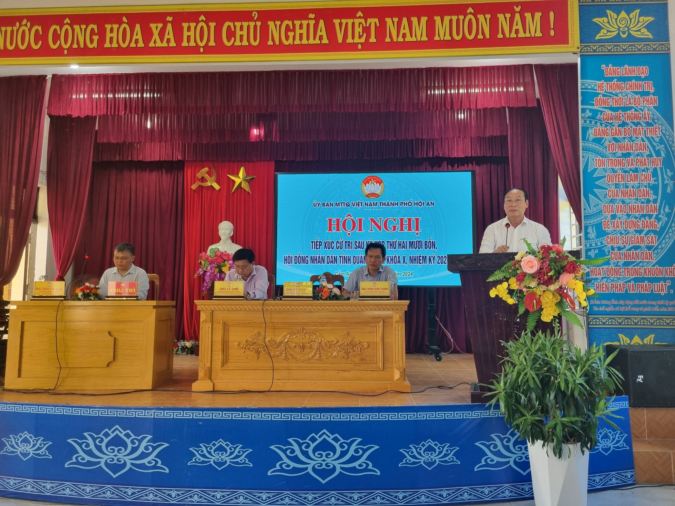 * Cử tri thành phố Hội An: cần quan tâm nâng cấp cầu Phước Trạch, các tuyến đường giao thông bị hư hỏng xuống cấp để tạo thuận lợi cho việc đi lại của du khách và bà con Nhân dân; đẩy nhanh tiến độ triển khai thi công dự án kè chống xói lở bờ biển An Bàng trước mùa mưa bão sắp đến; cho phép chuyển đổi mục đích sử dụng đất lúa bỏ hoang do nhiễm mặn sang nuôi trồng thủy sản để đạt hiệu quả sản xuất; tổ chức rà soát và có chủ trương đối với các “dự án treo” kéo dài, dự án chậm tiến độ trên địa bàn phường Cẩm An gây bức xúc và làm ảnh hưởng đến đời sống của người dân. Ngoài ra, cử tri còn kiến nghị các cấp có thẩm quyền và đại biểu HĐND tỉnh quan tâm xem xét giải quyết một số vấn đề về chế độ chính sách cho gia đình liệt sĩ, người có công cách mạng; chế độ hỗ trợ đối với Tổ trưởng, Tổ phó Tổ dân cư ở Thôn/khối phố….