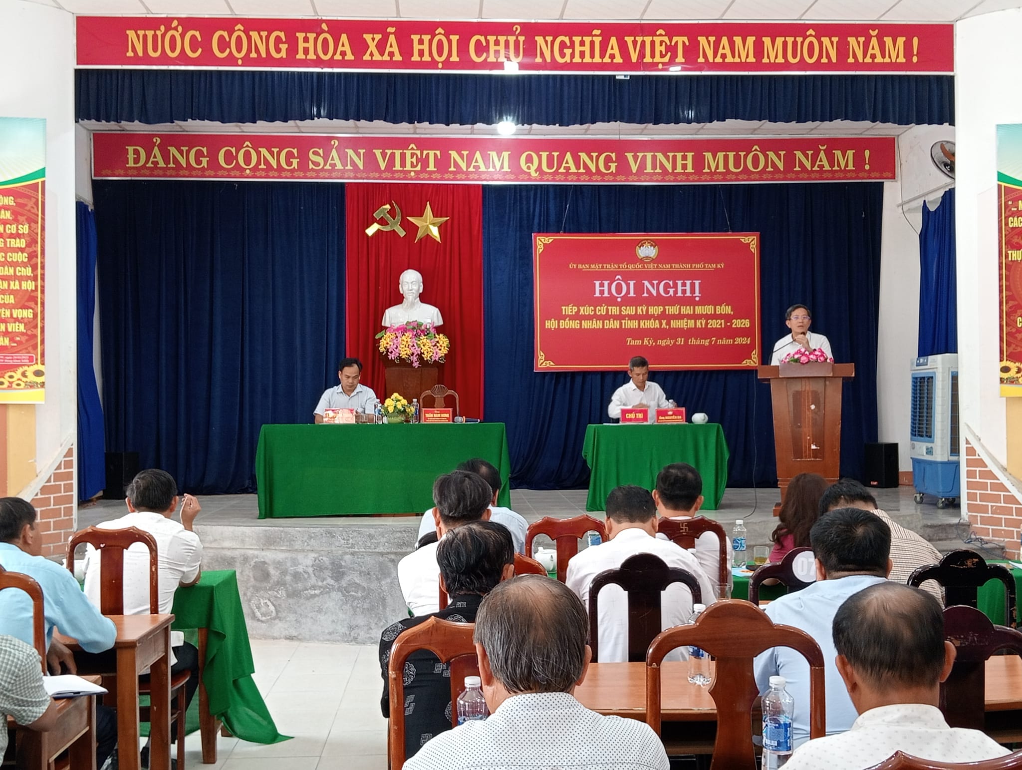 * Cử tri thành phố Tam Kỳ: Sớm triển khai nghĩa địa vùng Đông; nâng cấp các công trình, khớp nối tuyến đường đường giao thông, vỉa hè trên địa bàn xã Tam Thăng để tạo cảnh quan môi trường xanh- sạch- đẹp; thu gom rác thải trên địa bàn Tam Thăng chưa đảm bảo; thiếu văc-xin cho trẻ em thuộc diện tiêm chủng mở rộng; dự án khu phố chợ Trường Xuân đã triển khai lâu, nhưng hiện nay đơn vị thi công đã tạm dừng thi công, gây lo lắng cho người dân khu vực này; thẻ BHYT người dân đến khám tại các bệnh viện không đảm bảo thuốc, người dân phải đi mua thuốc ngoài; triển khai dự án về trùng tu, tôn tạo khu du lịch Kỳ Anh; việc trợ cấp xã hội nay chuyển qua thẻ ATM gây bất tiện cho những người ở nông thôn, vì chưa có thẻ ATM..