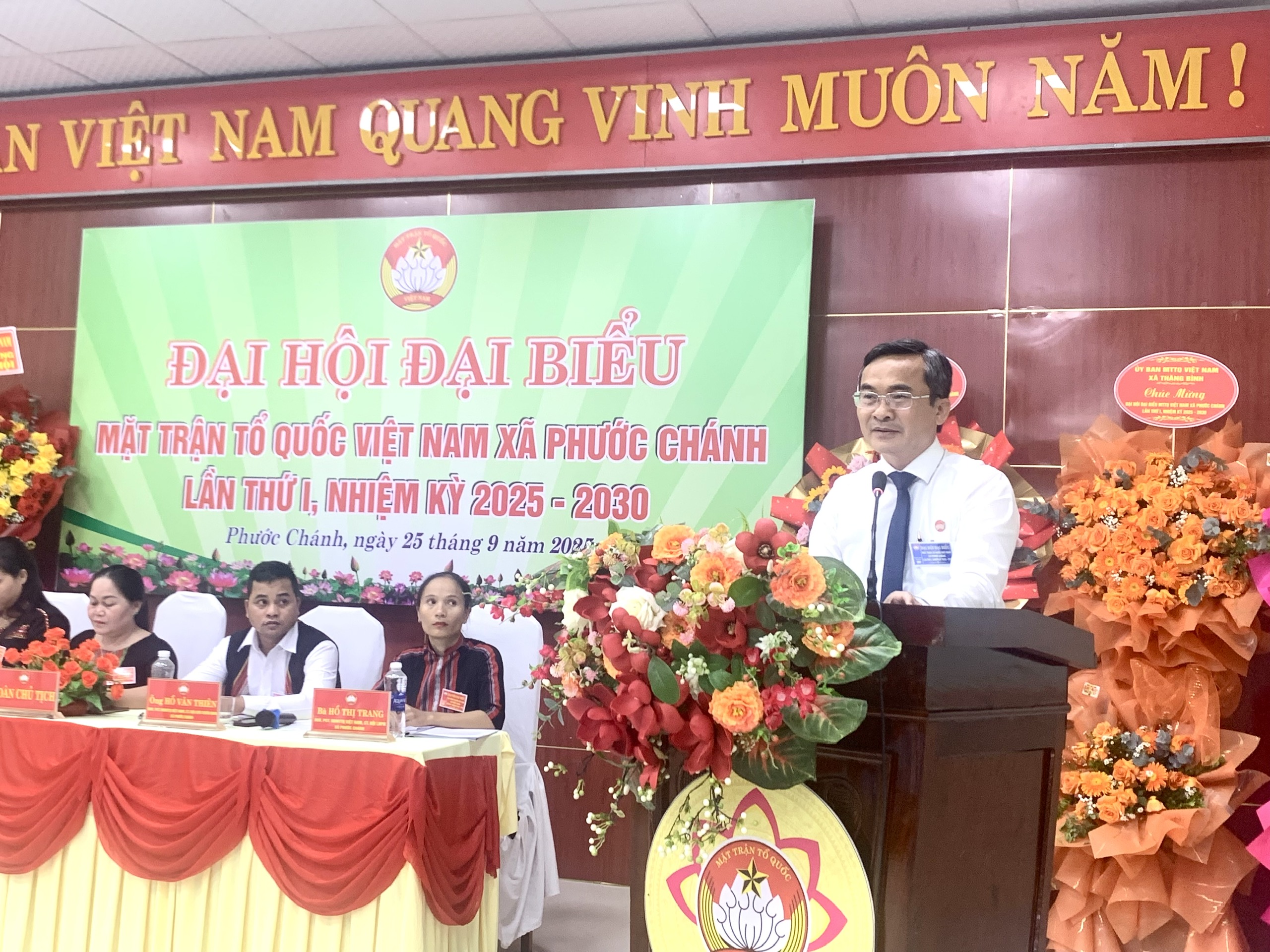 Phát biểu chỉ đạo Đại hội, đồng chí Nguyễn Phi Hùng – Phó Chủ tịch Ủy ban MTTQ Việt Nam thành phố – nhấn mạnh: Bước vào giai đoạn mới, xã Phước Chánh phải phát huy cao độ sức mạnh khối đại đoàn kết toàn dân, khơi dậy truyền thống cách mạng, tinh thần đoàn kết và khát vọng vươn lên của đồng bào dân tộc thiểu số. MTTQ cần coi công tác tuyên truyền, vận động, tập hợp Nhân dân tạo đồng thuận xã hội là nhiệm vụ xuyên suốt; đồng thời tiếp tục đổi mới phương thức hoạt động, nâng cao chất lượng giám sát, phản biện, góp phần xây dựng Đảng và chính quyền trong sạch, vững mạnh.