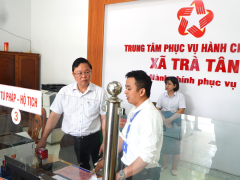 ĐNO - Sáng 6/10, đoàn giám sát của Ủy ban MTTQ Việt Nam thành phố Đà Nẵng làm việc với xã Trà Tân về kết quả hoạt động của Trung tâm Phục vụ hành chính công và công tác phòng chống thiên tai. Chủ tịch Ủy ban MTTQ Việt Nam thành phố Lê Trí Thanh làm trưởng đoàn giám sát.