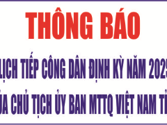 Ngày 19/12/2024, Ban Thường trực Ủy ban MTTQ Việt Nam tỉnh ban hành Thông báo số 25/TB-MTTQ-BTT về Lịch tiếp công dân định kỳ năm 2025 của Chủ tịch Ủy ban MTTQ Việt Nam tỉnh